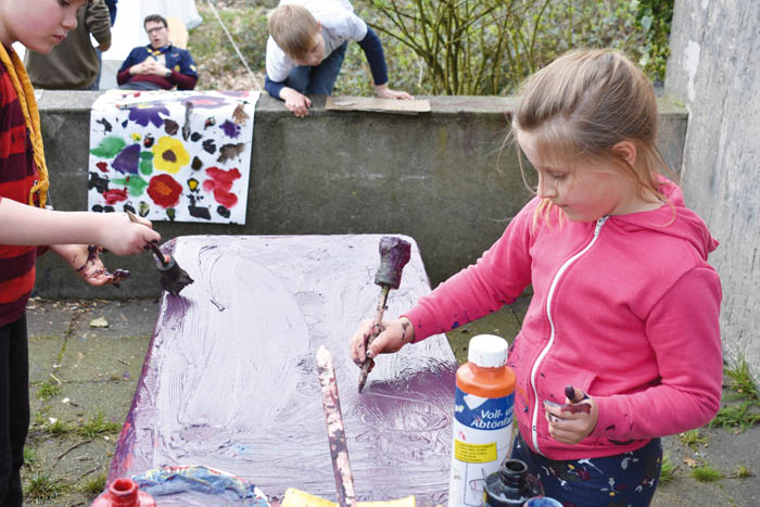 Die Aktivitäten sind vielfältig, fördern Kreativität, Hilfsbereitschaft, Respekt, Eigenständigkeit und Verantwortungsgefühl – füreinander und für die Natur. Und machen natürlich Spaß. Gleiches gilt auch für die gerade stattfindende ›Olympiade‹. Auf der Terrasse des Pfadfinderheims arbeiten Kinder gemeinsam an Bildern, oder besser gesagt Gesamtkunstwerken, die neben verschiedenen Farben auch Blätter und andere Elemente beinhalten. Im Keller wird gruppenweise an kleinen Brückenkonstruktionen gewerkelt, die fantasievoll aus Holzstäbchen und einigen anderen Materialien zusammengesetzt werden und am Ende ein bestimmtes Gewicht aushalten sollen.