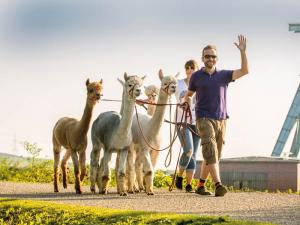 Es gibt ihn! Den perfekten Nebenjob! Wir haben ihn gefunden, und zwar in Obercastrop, wo Naturbursche Daniel Hischke eine 2,5 Hektar große Alpaka-Farm bewirtschaftet: ein verwunschenes grünes Idyll inmitten von Naturschutzgebieten und Ausgangspunkt für Trekking-Touren der etwas anderen Art. »Da wir immer mehr Anfragen bekommen, suchen wir jetzt junge Leute, die unsere Alpaka-Wanderungen an den Wochenenden unterstützen wollen«, so der 43-Jährige.