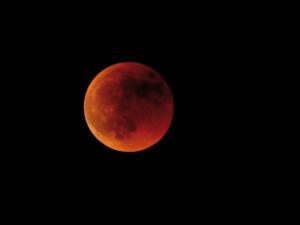 »Bei einer Mondfinsternis steht die Erde so zwischen Sonne und Mond, dass der Mond vom Kernschatten der Erde bedeckt wird. Ein wenig Sonnenlicht wird aber durch die Erdatmosphäre abgelenkt und fällt als schwacher Schein auf den Mond. Gleichzeitig schluckt die Atmosphäre den blauen Lichtanteil, beim restlichen Licht überwiegt der rote Lichtanteil. Daher wirkt der Mond rötlich.«