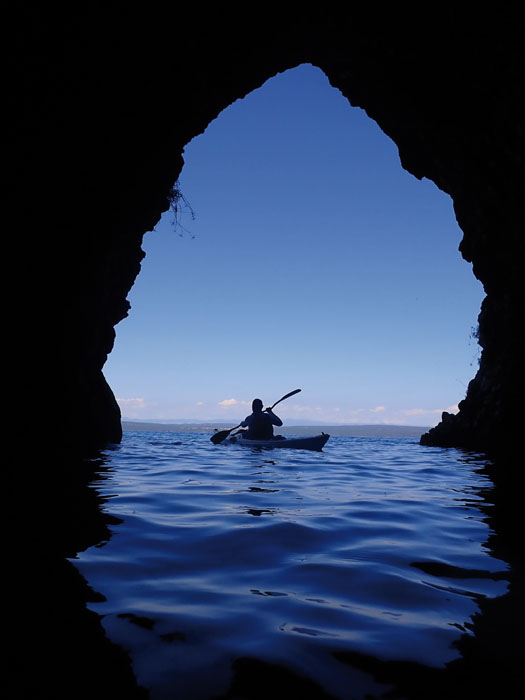 Bei den sogenannten Wildwasserfahrten kann es dagegen schon etwas rasanter zur Sache gehen. Hier müssen die Kanuten – ausgerüstet mit Helm und Sicherheitsleine – dann auch mal gegen Stromschnellen kämpfen, Felsblöcken ausweichen, mit ihren Kajaks über umgestürzte Bäume klettern oder sich bei Hochwasser unter Brücken hindurchducken. Dafür üben die Teilnehmer vorher im Hallenbad die Eskimorolle und das Einsteigen in ein gekentertes Boot. Letzteres sollte man auf offener See beherrschen, wie uns Wildwasserexperte Florian bestätigt. Gerade hat er eine vierwöchige Tour entlang der Adriaküste hinter sich. »Wir haben 25 Kilometer am Tag gemacht, fernab von allen Touristen.« Auch die Flüsse und Küstengebiete Neuseelands hat er schon bereist. »Diese Ruhe ist einfach herrlich. Nur du und das absolut klare, blaue Wasser. Man trifft keine Menschenseele, und wenn doch, sind die Leute super entspannt.«