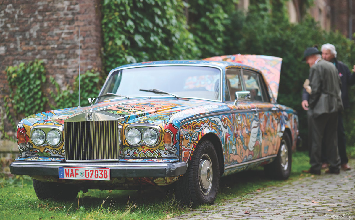 Ekstase ist auch beim nächsten Fahrzeug Programm. Der Rolls-Royce Silver Wraith II von 1977 gleitet zwar so leise dahin wie ein Gespenst. Die Karosse aus der Sammlung von Oldtimer-Koryphäe und Sachbuchautor Klaus-Josef Roßfeld fällt aber trotzdem auf: Sie wurde von dem französischen Künstler Christophe Emmanuel Bouchet mit üppigen Frauenkörpern in expliziten Posen bemalt. ›Visionen des Weibes – von der Heiligen zur Hure‹ lautet der Titel des rollenden Gemäldes, an dem Rubens seine wahre Freude gehabt hätte.