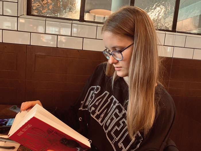 Solche Fragen hätten sie auch schon vor der Anthologie beschäftigt, verrät die Neuntklässlerin, die Reiten, Schwimmen und – nicht überraschend – Lesen zu ihren Hobbys zählt. Fantasy mag sie gern, ebenso Geschichten über die Liebe und das Leben. Einen Lieblingsautoren kann sie aber dennoch nicht nennen – da gibt es einfach zu viele. Jugendromane wie ›One of Us is Lying‹ von Karen M. McManus oder ›Ich werde fliegen‹ von Dana Czapnik reihen sich in ihrem Regal an Fantastisches wie ›Die Buchspringer‹ von Mechthild Gläser oder die ›Chroniken der Unterwelt‹-Bände von Cassandra Clare. Ob diese Werke sie auch bei ihren eigenen literarischen Texten inspirieren? »Eigentlich schreibe ich über alles, wonach mir gerade ist, was mir so im Kopf herumgeht: Freundschaft, Beziehungen, Situationen, die ich im Alltag beobachtet habe … Aber ich habe mir auch schon Gruselgeschichten ausgedacht wie die über ein kopfloses Geistermädchen, das ein anderes Mädchen verfolgt und in den Selbstmord treibt.«