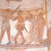 Ein eindrucksvolles Beispiel dagegen ist die nur wenige Kilometer von Witten entfernte Stiepeler Dorfkirche in Bochum. Obwohl sie bereits auch einige gotische Elemente im Baukörper aufweist, ist sie in ihrem Kern romanisch (Abb. 1). Überregional bekannt und kunsthistorisch wichtig ist sie auf Grund ihrer bedeutenden Wandmalereien, Fresken aus der ersten Hälfte des 12. Jahrhunderts. Decke, Triumphbogen und Apsiden sind mit biblischen Szenen aus dem neuen Testament gestaltet. So etwa in der nördlichen Apsis die Darstellung des bethlehemischen Kindermordes (Abb. 2) und die Flucht der Heiligen Familie nach Ägypten. Die Darstellungen bestechen nicht nur durch ihre eigene Dramatik, sondern auch durch die Farbgestaltung in Terra Siena, ein gelbes bis rotbraunes Farbpigment.