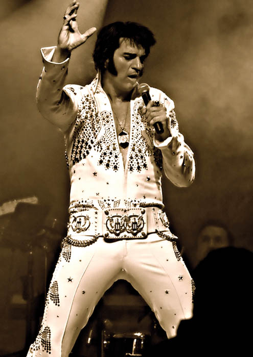 Und so dürfen sich die Besucher ein weiteres Mal auf hervorragende musikalische Darbietungen freuen. »Alles mit Liveband und mit Leinwandeffekten – wie immer!« Wobei jetzt für den 30. November schon das ein oder andere Jubiläums-Special geplant ist, hier will Shaky allerdings nicht zuviel verraten. »Es soll ja eine Überraschung sein!« Mit einer Neuigkeit rückt er dann aber doch heraus: »Ich selbst werde ein wenig anders aussehen als sonst. Elvis ist ja mit seinen 42 Jahren recht früh von uns gegangen. Obwohl die etwas angegraute Mähne regelmäßig schwarz gefärbt wurde, litt er noch nicht unter altersbedingtem Haarausfall. Das ist bei mir ein klein wenig anders; selbst wenn ich von einem kahlen Schädel noch weit entfernt bin, die volle Elvis-Haarpracht habe ich nun nicht mehr. Das gilt übrigens mittlerweile für rund 60, 70 Prozent der Doubles, sie alle haben inzwischen eine Perücke auf. Und ich jetzt eben auch.« Dieses wirklich ganz besondere Accessoire orderte Shaky Everett bei einem eigens darauf spezialisierten, weltweit bekannten Hersteller in Kanada. Wir sind gespannt: auf Haarpracht und Kostüm, auf Musiker und Sänger, auf Songauswahl und Interpretation, kurz auf das gesamte spektakuläre Spektakel rund um den King of Rock ’n’ Roll.
