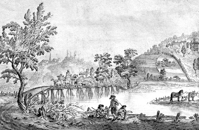 Dann kam der Winter 1503/04, der Überlieferung zufolge ein ›Ausnahmewinter‹, der die Ruhr vollständig zufrieren ließ. Als dann das Frühjahrshochwasser einsetzte, schwoll der Fluss an, die Eisfläche brach auf und die Eisschollen stauten und türmten sich auf zu einem Eisberg vor der hölzernen Brücke. Die ohnehin schon marode Holzkonstruktion war dieser Belastung nicht gewachsen – sie brach zusammen und wurde fortgerissen. Die Verbindung zum südlichen Ruhrufer war für Witten aber lebenswichtig, auf einen Ruhrübergang konnte man nicht verzichten, und so richtete man an der Stelle eine Fähre ein, eine sogenannte ›Schifffahrt‹. Dazu verlegte man die bestehende Fähre, die unterhalb von Steinhausen schon lange im Betrieb war, genau dorthin, wo die heutige Ruhrbrücke steht. Ein Fährbetrieb war damals ein einträgliches Geschäft: Die Rechte darauf, die sogenannte ›Fährgerechtsame‹, lagen in der Hand der jeweiligen Gerichtsherren, also bei Haus Berge, die sie wiederum an einen Fährmann verpachteten.