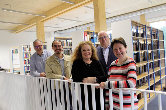 Helle Farben, hohe Fenster und vor allem: viel Holz. Die neue Bibliothek der Universität Witten/Herdecke ist ein Hingucker – und ein Ort zum Wohlfühlen. Am 1. Oktober wurde der ökologische Holzbau nach zweijähriger Bauphase offiziell eröffnet. »Das ist ein großes Ding!«, freuen sich Ulrich Heinemann, Klaus Völkel, Britta Koch und Martina Knop vom Vorstand der Wittener Universitätsgesellschaft (WUG), die das u. a. über Fundraising finanzierte Projekt mit einer Spende von 50.000 Euro, verteilt über drei Jahre, unterstützt. »In einer Gegend, die durch Stahl und Kohle geprägt ist, ein ressourcenschonendes Bauwerk zu errichten, das ist so typisch Uni Witten/Herdecke! Klar fördern wir das!«