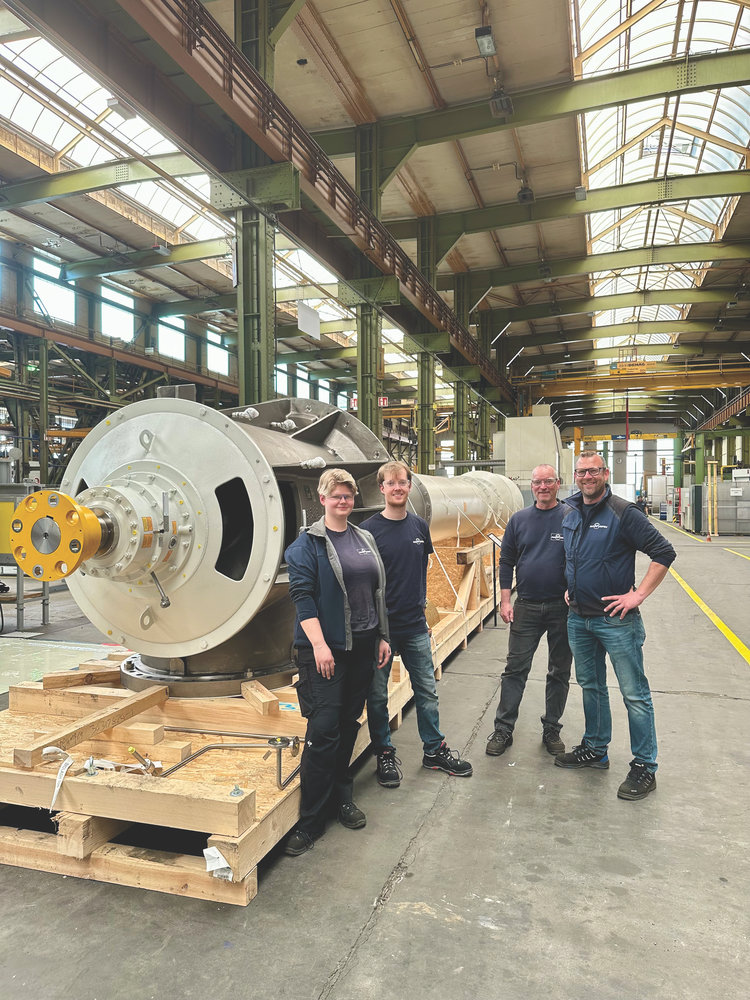 »Im letzten Jahr haben wir Module für eine transalpine Pipeline gebaut, die Rohöl von Italien bis Deutschland befördert«, erzählen Tobias Rieske (Montageleiter) und Frank Bertram (Leiter Instandhaltung). »Unsere Technologien kommen aber auch vor Ort in Raffinerien und Chemieanlagen zur Anwendung.« Der Gang durch die Maschinenhalle zeigt die Vielfalt der Produkte, die unter dem Dach des Unternehmens das Licht der Welt erblicken. Die kleinsten Pumpen wirken beinahe handlich – doch der Eindruck täuscht. Kein Mensch könnte sie mal eben von A nach B tragen. Daneben finden sich tonnenschwere Stahlkolosse, die, angetrieben von bis zu 9.000 PS starken Motoren, Inhalte mit enormem Druck durch die Leitungen jagen. Jedes System ist ein Unikat, maßgeschneidert für seinen späteren Daseinszweck. Besonders beeindruckend: eine 21 Meter lange Kühlwasserpumpe, die bald in der norwegischen Nordsee stehen wird.